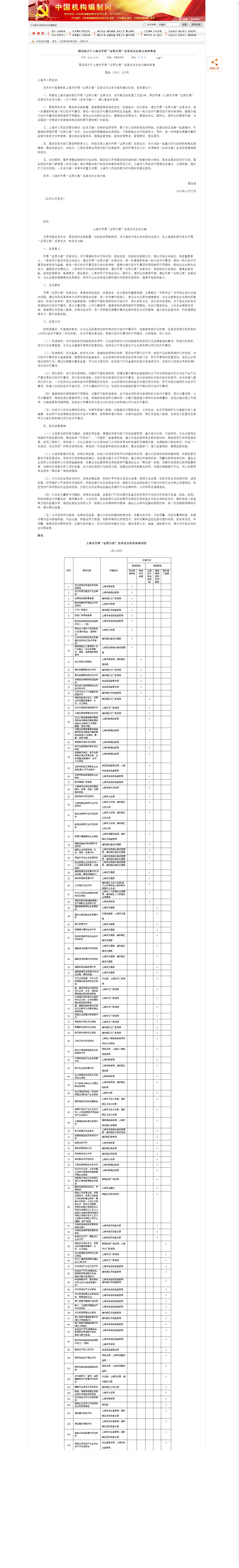 國務院關于上海市開展“證照分離”改革試點總體方案的批復